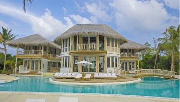 This our idea of what overwater living should be, with a huge 1,226 square metres of luxurious living space and uninhibited views in every direction. This huge villa features four private bedrooms, in addition to a study, gym, an outdoor shower and daybed, TV lounge, walk-in minibar and a sleeping area for the children, as well as a water slide from the top deck into the lagoon below.